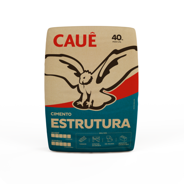 O Cimento CPV Estrutura da Cauê é entregue em um saco de papelão de 40kg, facilitando o transporte e o manuseio na sua obra. A embalagem protege o produto, garantindo que ele chegue em perfeitas condições para uso.