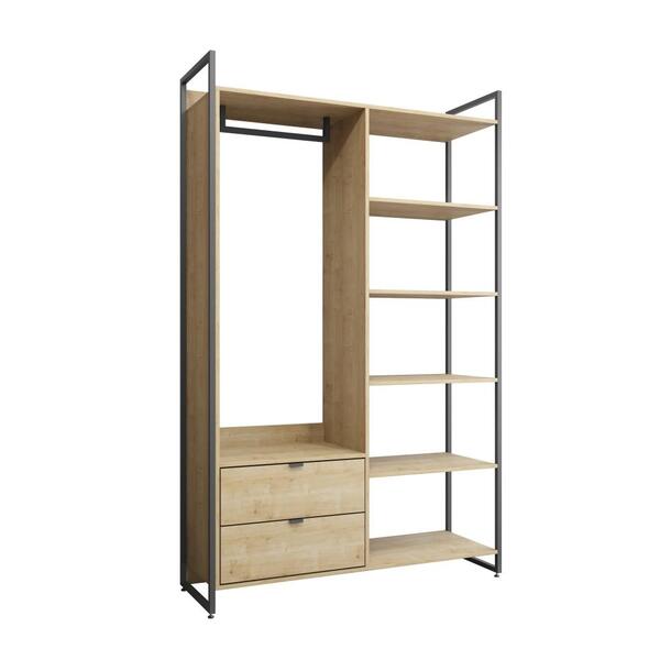 Oroupeiroé ideal para a organização das suas roupas, oferecendo um novo estilo de decoração. Com design industrial, possui 4 prateleiras, 2 gavetas e 1 gabideiro , que ajudam a manter as roupas arrumadas. Produto produzido em mdp/bp de 15mm, estrutura metálica com pintura epó...