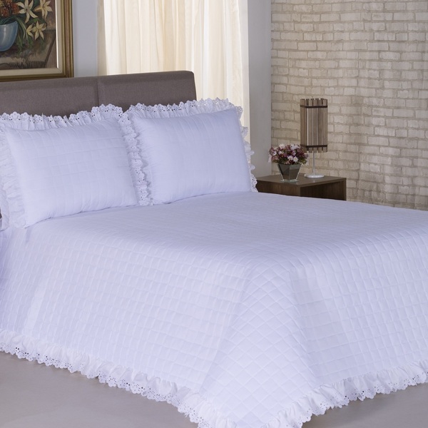 Cobreleito diplomata queen 03 pçs branco, contem: 01 cobreleito 2,60 x 2,40 02 portas travesseiros 0,50 x 0,70 composição: tecido superior : 100%poliéster tecido inferior: 100%prolipropileno manta: 100%poliéster 01 cobreleito 2,60 x 2,40 02 portas travesseiros 0,50 x 0,70 composição: tecido superior : 100%poliéster tecido inferior: 100%prolipropileno manta: 100%poliéster