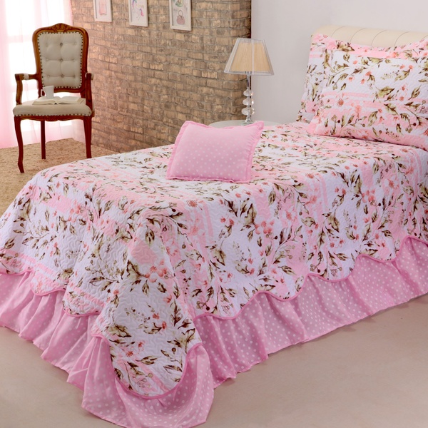 Os cobreleitos da deccoralle são confeccionados pensando no seu bem-estar. Além de proporcionar uma sensação térmica agradável, eles são resistentes, duráveis e fáceis de lavar, facilitando a manutenção e conservação, além de transformar o seu quarto em um ambiente acolhedor e cheio de personalidade. Nossos produtos combinam qualidade, conforto e design exclusivo, garantindo noites de sono tranquilas e um visual sofisticado.   quantidade de peças e medidas aproximadas (largura x altura): 01 cobreleito 2,30 m x 2,10 m 01 porta travesseiro 0,70 cm x 0,50 cm 01 capa de almofada 0,40 cm x 0,40 cm   material e composição: superior: microfibra estampada 100% poliéster manta: 100% poliéster inferior: 100% polipropileno   informações específicas:  ótima qualidade e acabamento indicado para cama solteiro tecido matelassado com babado       informações gerais: enchimentos de travesseiros e almofadas não acompanham o produto                                                                           material visual ilustrativo pode haver alterações na tonalidade da cor da imagem do produto, devido a diferença de telas de visualização fique atento(a) à descrição do produto, podendo não apresentar todas as peças que constam n