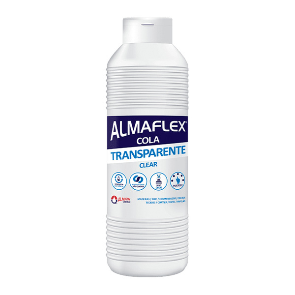 A almaflex® cola gel transparente 815 é indicado para trabalhos profissionais e domésticos em materiais porosos como: madeiras, couros, tecidos, cortiça, papel, papelão, cartolina e afins. Sua característica de ser transparente no acabamento é muito útil em projetos que exigem um resultado final esteticamente atraente e discreto.   benefícios - base d’água e lavável; - atóxica; - aderência flexível (não quebra) - zero odor; - multiuso.   indicações adesivo transparente multiuso base d’água para colagem de materiais porosos como: madeiras, couros, tecidos, cortiça, papel, papelão, cartolina e afins. Uso profissional ou artístico.   modo de uso 1- as superfícies a serem coladas deverão estar limpas, planas e secas; 2- aplicar o adesivo sobre toda a extensão (bico aplicador, pincel, rolo, ou outras ferramentas podem ser utilizadas para garantir que toda a superfície seja coberta), juntando imediatamente à outra superfície a ser colada; 3- manter a peça sob pressão até a secagem do adesivo; 4- aguardar 24 horas para o máximo desempenho;   composição dispersão aquosa à base de polímero vinílico.