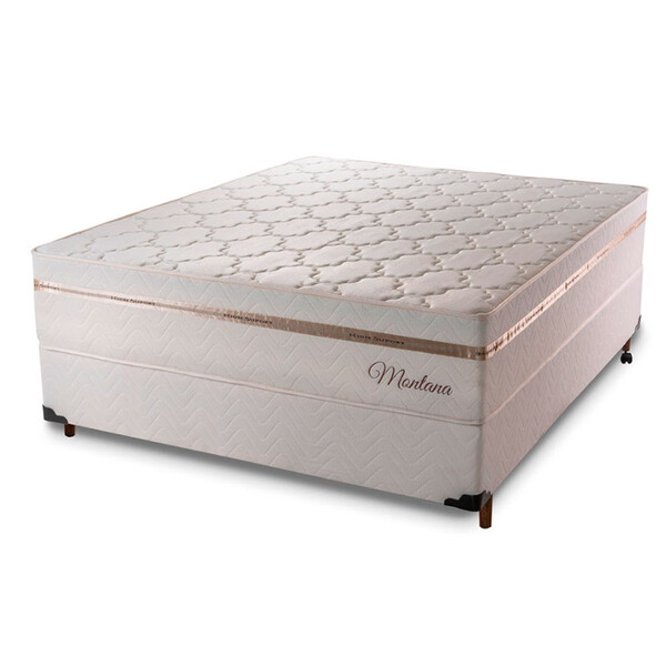 Colchão montana master. Garante conforto e estabilidade no molejo do colchão, em jacquard matelasse, pés de madeira de 12cm, cantoneiras de proteção. Suporta 120kg por pessoa. dimensões: altura: 33 cm largura: 138 cm profundidade: 188 cm peso: 22,57 kg garantia do fornecedor: 01 mês