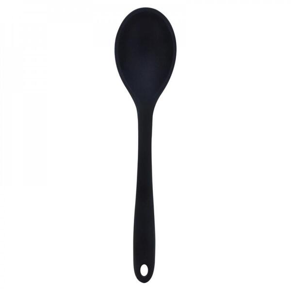 Colher de silicone preta 28cm mimo utensílio ideal para o uso no dia a dia pois por ser de silicone ele aguenta altas temperaturas e não arranha nem tira o antiaderente das sual panelas material: silicone e ferro medidas: 28cm x 06cm imagem meramente ilustrativa