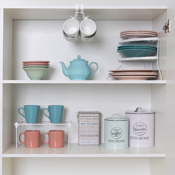 Além de maximizar o espaço, os organizadores para armário de cozinha são essenciais para facilitar a rotina diária. O combo cozinha inclui: 1 porta xícaras: 9cm x 10cm x 26,5cm 1 rack de pratos de canto: 32cm x 23cm x 19cm 1 prateleira organizadora média: 31,5cm x 12,5cm x 19cm