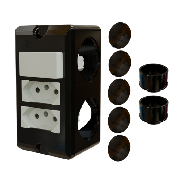 Combo Poliwetzel 1 PVC com 2 Tomadas 20A, 1 Interruptor Simples, 2 Conectores e 5 Tampões Preto Wetzel