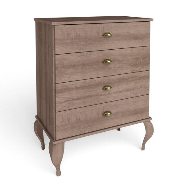 Características - Rústico - Estrutura: MDP - Acabamento: Pintura UV - 4 Gavetas - Corrediças metálicas - Pés clássicos em madeira - Peso Suportado: 15 kg - Marca: Móvel Bento