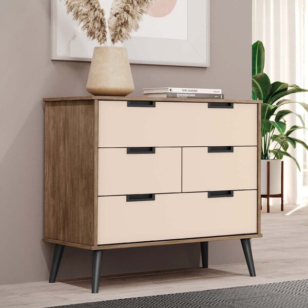 Cômoda 4 gavetas carvalho/off white. Cômoda estilo retro, 100% mdf, com pintura texturizada em 7 camadas de tinta, proporcionando melhor resistência à riscos e batidas. Puxadores embutidos na cor preta, conferindo qualidade e design para seu móvel. Gavetas embutidas, dando ...