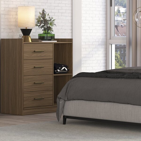 Cômoda 4 Gavetas 2 Nichos Nogueira