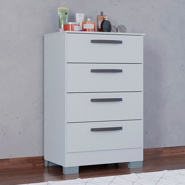 Descrição: o(a) cômoda 4 gavetas branco - poquema é produzido em mdp na escala de brilho brilho, e possui um grau de dificuldade de montagem: médio.seu revestimento/acabamento é: pintura uv. Infelizmente a loja não oferece serviço de montagem, deixamos essa informação bem...