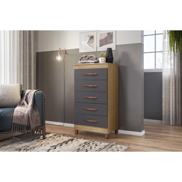 Cômoda 5 Gavetas Esmeralda Freijó / Titanium