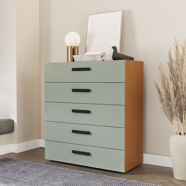 Cômoda 5 Gavetas Lisboa  Freijó/verde