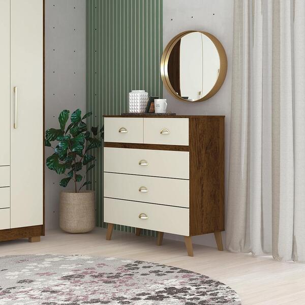 A cômoda é o complemento ideal para o seu quarto. É perfeita para pequenos ambientes. A cômoda feita em mdp dispõe de cinco gavetas com profundidade excelente para acomodar todas as suas roupas. Dimensões da cômoda: altura: 110 cm largura: 91 cm profundidade: 47 cm informação do produto: cor: imbuia champanhe gavetas: sim (5) pés: sim (5) plástico itens inclusos: 1 cômoda manual de montagem kit completo para montagem e manual de instruções garantia: 3 meses contra defeito de fabricação informações adicionais: - fotos meramente ilustrativas do produto no ambiente. - os objetos que ambientam as fotos não acompanham o produto; - verificar descrição e tamanho do produto antes da compra. - avaliar a mercadoria no ato do recebimento e recuse em caso de divergência ou avarias. - mantenha as informações de contato e endereço de entrega atualizados para entrarmos em contato caso necessário. - limpar com flanela ou pano macio seco, não utilizar produtos abrasivos, desengordurantes, álcool ou solvente. Não expor o produto diretamente à luz solar e à umidade. * sugerimos a contratação de um montador profissional para a montagem do produto. Não nos responsabilizamos por avarias causadas no ato da montagem. * não nos responsabilizamos pela montagem e desmontagem do produto no ato da entrega e devolução, assim como os custos gerados nestas situações. * a transportadora entregará o produto no andar térreo do endereço de entrega. * não nos responsabilizamos por subir escadas, corredores e elevadores ou transporte por guincho em apartamentos.
