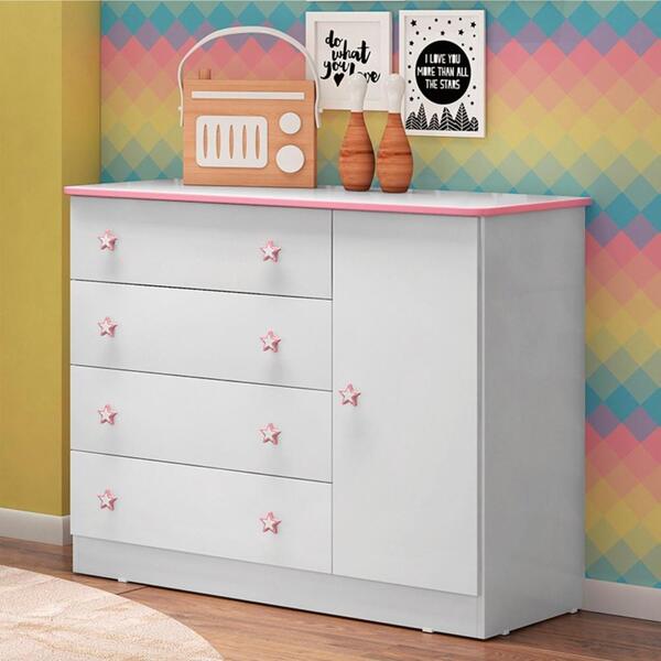 Cômoda antiguabranco rosaacômoda antiguaé o produto ideal para você que procura um móvel prático e com ótimo acabamento.ela possui 4 gavetas e 1 repartição que serve como sapateira, conferindo assim uma boa organização.gavetas com corrediças metálicas e excelente profundidade...