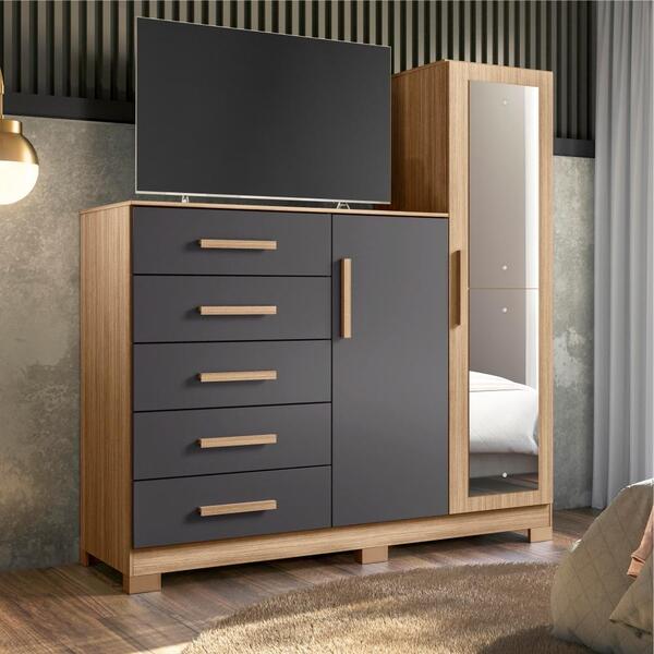 A cômoda veio para agregar o seu quarto trazendo muito mais conforto.5 gavetas com corrediças telescópicaspuxadores de mdf revestidos e pés inclusostampo superior em 15 mmcabideiro em alumínio.reforço estrutural no fundo das gavetasespaço para tv de até 43"espelhos inclusos 0...