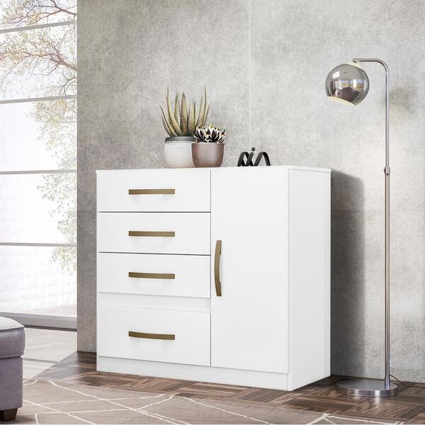 Dimensões do produto:altura 86 cm; largura 97 cm; profundidade 47 cm;itens inclusos:1 cômoda- produzido em mdp- amplo espaço para melhor organização- possui revestimento em uv- 4 gavetas e 1 porta- 1 prateleira interna- tampo com amplo espaço- possui corrediças e dobradiças metálicas- puxadores em abscomplexidade da montagem:média, pode ser montado por apenas uma pessoa e/ou necessite de maior conhecimento para montagem.recomendações de uso, manutenção e limpeza:limpar com flanela ou pano macio seco, não utilizar produtos abrasivos, desengordurantes, álcool ou solvente. Não expor o produto diretamente a luz solar e à umidadegarantia:3 mesesobs: foto meramente ilustrativa, objetos, utensílios e decoração não fazem parte do produto.