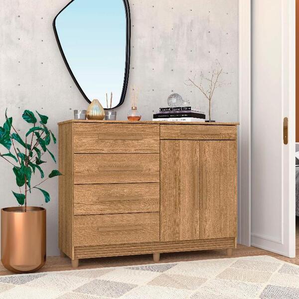 A cômoda com um design moderno é ideal para facilitar seu dia a dia na organização da sua casa. Produzido em mdp, possui 2 portas, pés de madeira opcional na montagem, puxadores em mdf e ainda conta com 5 gavetas. Dimensões do produto: altura: 96,5 cm largura: 122 cm comprime...