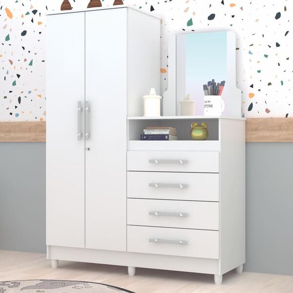 Cômoda esther com espelho brancoacômodaesthercom espelhoé o produto ideal para você que procura um móvel prático;gavetas com corrediças metalicas e excelente profundidade;pés em madeira um ótimo padrão de acabamento;informações do produto:altura: 167 cmlargura: 121 cmcomprime...