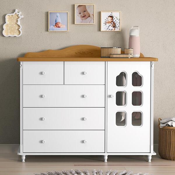 Cômoda infantil provence plus - matic móveis a cômoda infantil provence conta com um lindo design estilo provençal, ideal para quem deseja colocar um toque delicado, suave e romântico na decoração. Foi projetada com um amplo espaço para proporcionar praticidade na hora de org...