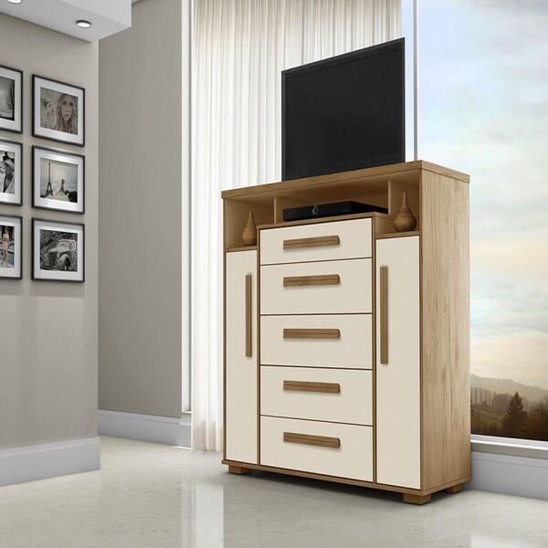 Cômoda italia cedro/off whitecômoda, com 05 gavetas sendo uma com espelho interno, duas portas laterais, uma com prateleira outra com opção para cabideiro, tampo reforçado.dimensõesaltura: 116,5 cmlargura: 124,50 cmprofundidade: 46 cmpeso: 73,90 kggarantia do fornecedor de 03 mesesatenção: não nos responsabilizamos, no ato da entrega, por desmontagens, subir escadas/elevadores ou transporte por guincho para apartamentos. Eventuais despesas são de responsabilidade do cliente. Confira as dimensões deste produto e certifique-se de que passará normalmente por supostos elevadores, portas, escadas e/ou corredores de sua moradia.produto vai desmontado, orientamos contratar um montador de móveis. Cor: cedro/off whiten/a