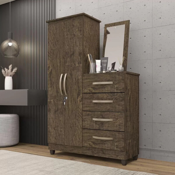 Deixe seu quarto completo e muito mais bonito com essa linda cômoda multiuso, além de transformar o visual do seu quarto ela também pode ajudar na organização das suas roupas. Do lado multiuso ela possui 2 portas com chave e na outro lado uma cômoda de 4 gavetas com espelho e...