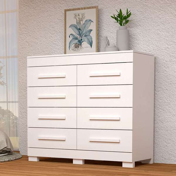 Que tal a cômoda nalu?forma simples de deixar a rotina no dormitório mais prática, a cômoda nalu é um complemento primoroso tanto para a décor quanto para a organização. Ideais para as peças que ficam dobradas, as 8 gavetas são reforçadas pelo tampo, que pode apoiar caixas organizadoras para aqueles objetos menores ou até mesmo alguns enfeites que vão deixar o espaço com a sua cara. Para coroar toda essa usabilidade, a estrutura robusta ganha o contraste da coloração leve que forma um móvel harmônico e cheio de benefícios para a sua decoração - daí é só escolher o restante do mobiliário e criar o cantinho relax perfeito.