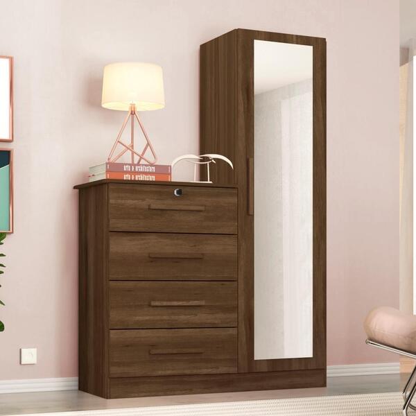 A cômoda é o complemento ideal para o seu quarto. É perfeita para pequenos ambientes.dispõe de 4 gavetas e 4 prateleiras com profundidade excelente para acomodar todas as suas roupas e 1 espelho.suporta 43 kg distribuidos;informações do produto:altura: 161 cmlargura: 109 cmco...