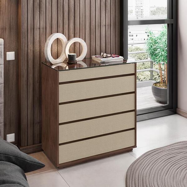 Acômodaé o que faltava para o seu quarto. Estrutura elaborada em mdp de 25mm e 15mm e tampo de vidro ela possui 5 gavetas sendo que a superior possui um organizador interno para joias, relógios, etc, feito em mdf. Elaborada em mdp e mdf. Sua pintura semi-brilho conta com acabamento print wood dimensões do produto: altura: 94,5 cm largura: 90 cm comprimento: 45,5 cm informações adicionais: cor:jacaranda linho gavetas: sim (5) possui pés: não material principal: mdp / mdf tipo de corrediças: telescópicas peso suportado: 40 kg itens inclusos: 1 cômoda. Kit completo para montagem e manual de instruções. Garantia: 3 meses contra defeito de fabricação. Informações complementares: - fotos meramente ilustrativas do produto no ambiente. - os objetos que ambientam as fotos não acompanham o produto; - verificar descrição e tamanho do produto antes da compra. - avaliar a mercadoria no ato do recebimento e recusar em caso de divergência ou avarias. - mantenha as informações de contato e endereço de entrega atualizados para entrarmos em contato caso necessário. - limpar com flanela ou pano macio seco, não utilizar produtos abrasivos, desengordurantes, álcool ou solvente. Não expor o produto diretamente à luz solar e à umidade. * sugerimos a contratação de um montador profissional para a montagem do produto. Não nos responsabilizamos por avarias causadas no ato da montagem. * não nos responsabilizamos pela montagem e desmontagem do produto no ato da entrega e devolução, assim como os custos gerados nestas situações. * a transportadora entregará o produto no andar térreo do endereço de entrega. * não nos responsabilizamos por subir escadas, corredores e elevadores ou transporte por guincho em apartamentos.