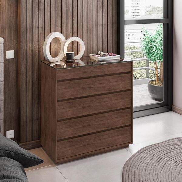 Acômodaé o que faltava para o seu quarto. Estrutura elaborada em mdp de 25mm e 15mm e tampo de vidro ela possui 5 gavetas sendo que a superior possui um organizador interno para joias, relógios, etc, feito em mdf. Elaborada em mdp e mdf. Sua pintura semi-brilho conta com acab...