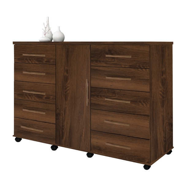 Cômoda Titan Freijó A Cômoda Titan é ideal para proporcionar um diferencial decorativo para seu ambiente. Possui 10 Gavetas e 1 Porta, Tampo MDP 25mm - Laterais MDP 15mm - Base MDP 15mm - Frentes Gavetas MDP 12mm - Porta MDP 12mm - Laterais Gavetas 12mm - Contra Fundos 12mm - Fundos 3mm - Puxadores Plásticos - Corrediças Telescópicas - Rodízios. Informações do produto- Altura- 113 cm Largura- 183 cm Comprimento- 54 cm Material- MDP Garantia- 3 meses contra defeito de fabricação. Instruções de Limpeza e Cuidados- Limpar com pano seco, manter em lugar livre de umidade, ao abrigo de exposição direta ao sol. Itens Inclusos- 01 Cômoda. Kit completo para montagem, manual detalhado de instruções. Informações complementares- - Fotos meramente ilustrativas do produto no ambiente. - Verificar descrição e tamanho do produto antes da compra. - Avaliar a mercadoria no ato do recebimento e recusar em caso de divergência ou avarias. - Mantenha as informações de contato e endereço de entrega atualizados para entrarmos em contato caso necessário. * Sugerimos a contratação de um montador profissional para a montagem do produto. Não nos responsabilizamos por avarias causadas no ato da montagem. * Não nos responsabilizamos pela montagem e desmontagem do produto no ato da entrega e devolução, assim como os custos gerados nestas situações. * A transportadora entregará o produto no andar térreo do endereço de entrega. * Não nos responsabilizamos por subir escadas, corredores e elevadores ou transporte por guincho em apartamentos.