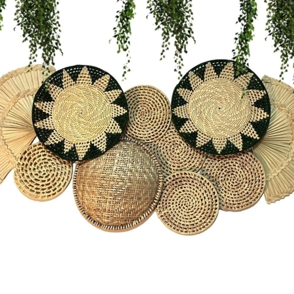 Composição açucena** o conjunto inclui:* 1 unidade peneira m 30 cm.* 5 unidade furadinho 20 cm..* 2 mandalas verde* 2 leque de 45 cmtotal de peças:10obs: por se tratar de um produto feito à mão artesanalmente, sua cor, forma e tamanho pode variar ligeiramente.