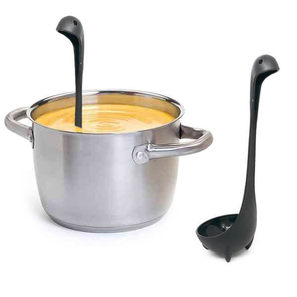O monstro do lago ness foi flagrado em sua cozinha. Isso é o que as pessoas vão dizer ou verem a concha monstro do lago ness sendo usada para criar e servir as suas delícias culinárias. Além disso, a melhor parte é que a concha possui quatro perninhas curtas que permite que você a deixe na posição vertical sobre a sua pia! Uma ótima ideia de presente diferente e criativo para pessoas que adoram inovar, além de bom senso de humor e criatividade.   medidas da concha : 26,5 x 11 x 9 centímetros cor: preto material: nylon temperado; 100% food safe. Pode ir na lava-louças; não utilizar no microondas.