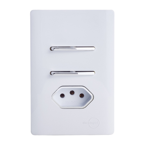 Conjunto 1 Tomada e 2 Interruptores Energia Paralelo 20A 4x2 Branco Novara Dicompel