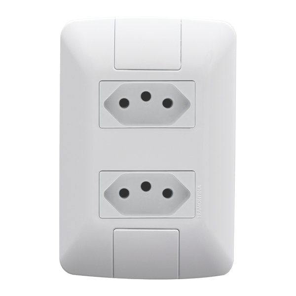 Interruptores e tomadas - tramontina aria conjunto completo com: 2 módulos de tomadas 20a 1 placa com suporte embutido 4x2 2 parafusos os itens acima são enviados desmontados, para montar é fácil, só encaixar.   marca de conformidade de produtos certificados.