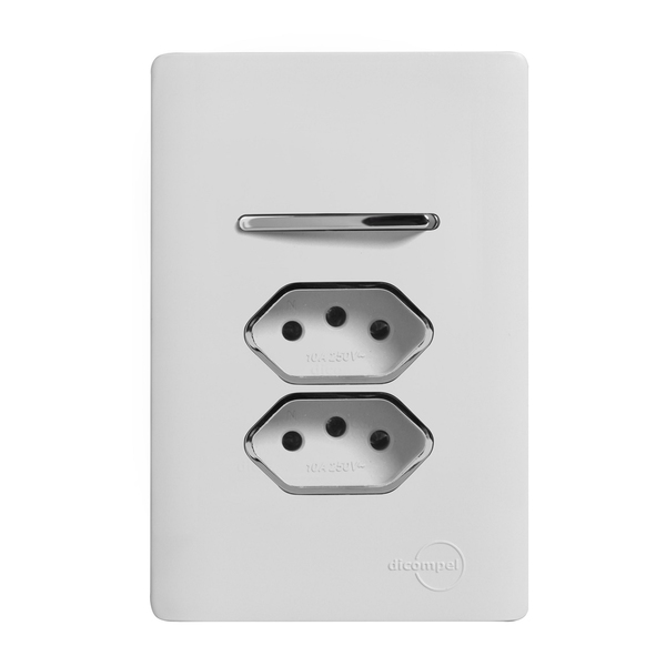 Conjunto 2 Tomadas e 1 Interruptor Energia Simples 10A 4x2 Branco Novara Dicompel