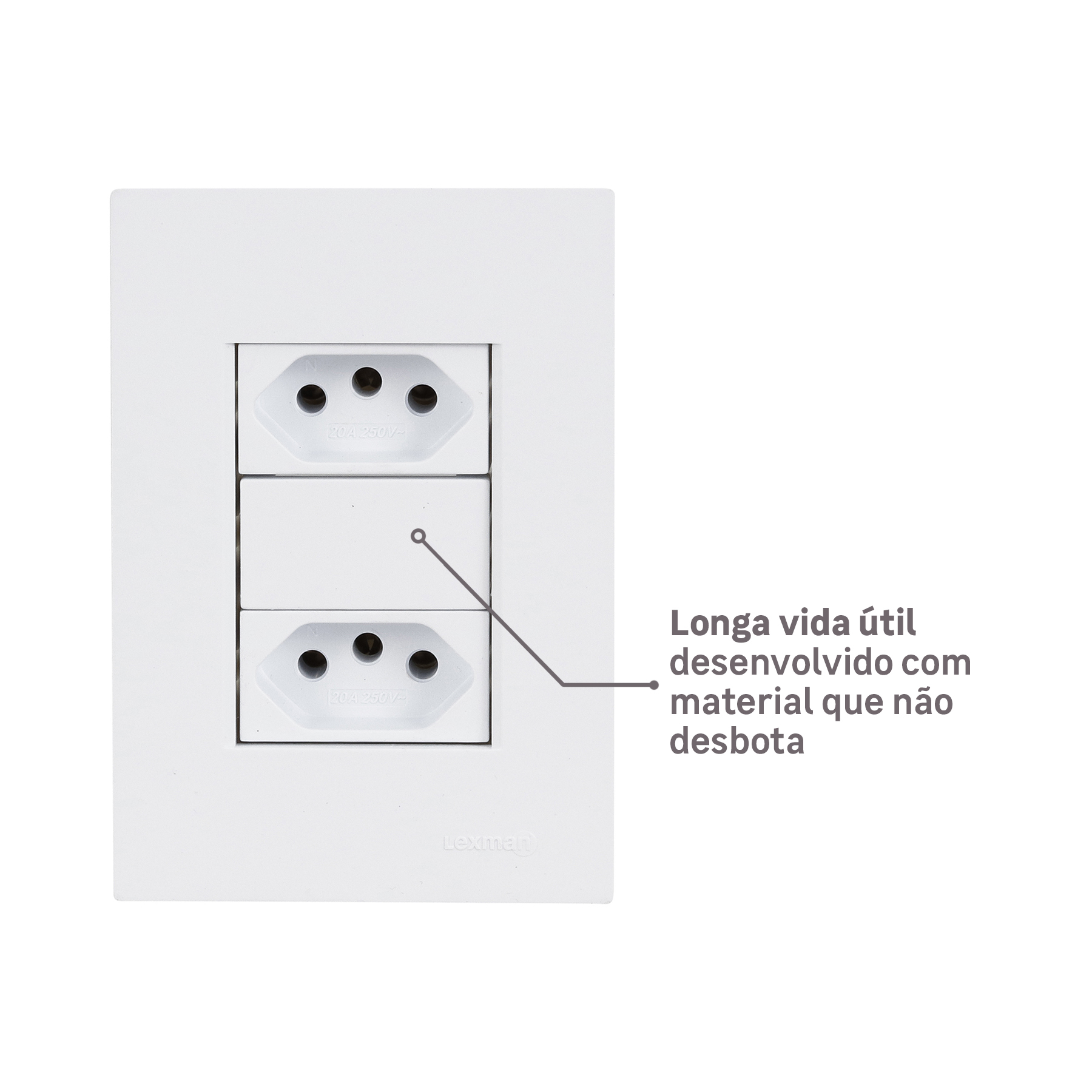 Conjunto 4x2 Simples 2 Tomadas 20A com Suporte Branco Fosco Madrid Lexman