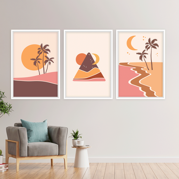 Conjunto 3 quadros com moldura sunset branco - médio -