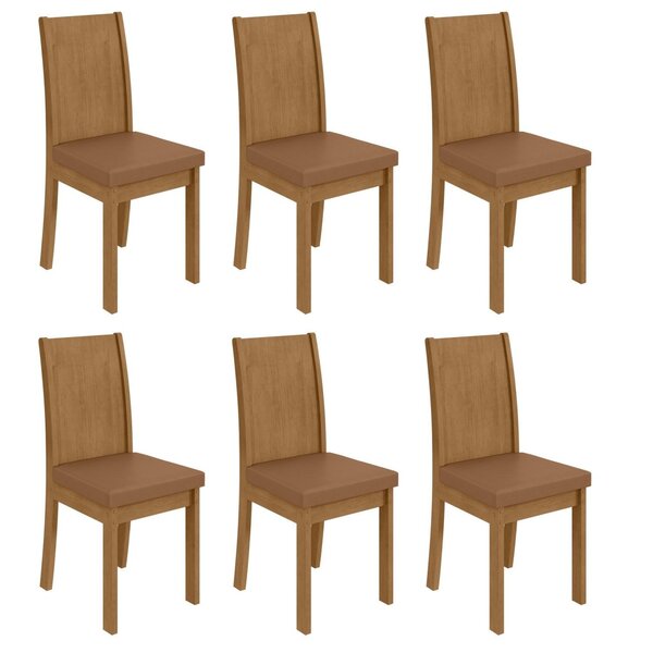 a cadeira de jantar com encosto alto é confortável? Claro, ela é produzida com materiais de qualidade e resistentes. Pode usar a cadeira para sala de jantar em outro ambiente? Sim, também é ideal como conjunto de cadeiras para cozinha e na decoração para sala de estar. Peso (kg): 8.5 garantia: 03 meses altura (cm): 101 giratória: não largura (cm): 45 possui rodízio: não suporta até (kg): 120 profundidade (cm): 54 tipo de assento: fixo tipo de encosto: fixo serviço montagem: 114259443 origem do produto: nacional ambiente principal: sala de jantar almofada do assento: fixa estrutura do assento: mdp estrutura do encosto: mdf enchimento do assento: espuma d-20 material da estrutura: mdf/mdp revestimento do assento: veludo possui apoio para braços: não possui apoio para os pés: não altura do assento até o chão: 48.5 fabricante: móveis lopas marca: móveis lopas cor: amêndoa clean/corino caramelo itens inclusos: 6 cadeiras, kit ferragens e manual de montagem. Quantidade do produto: 6