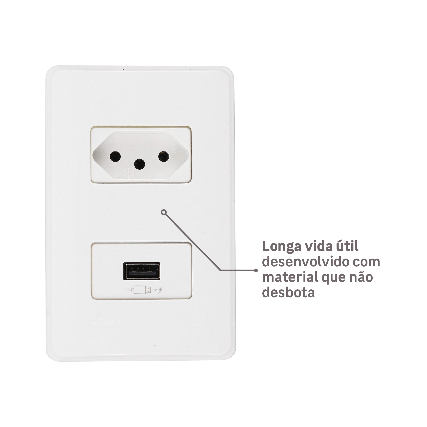 Conjunto Carregador USB 2.1A e Tomada 10A 250V Simon 19, da Simon