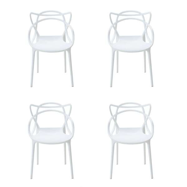 Por que o conjunto de cadeiras allegra?dona de um design moderno, o modelo allegra é a junção das famosas cadeiras tulipa, eifell e charles eames. Lindíssima, não é? A peça é confortável, espaçosa e possui o encosto de linhas curvas entrelaçadas que formam desenhos abstratos. Não parece que ela tem duas orelhas de gatinho? Charmosa, não é? O conjunto de cadeiras allegra vem com 4 cadeiras. Leva!