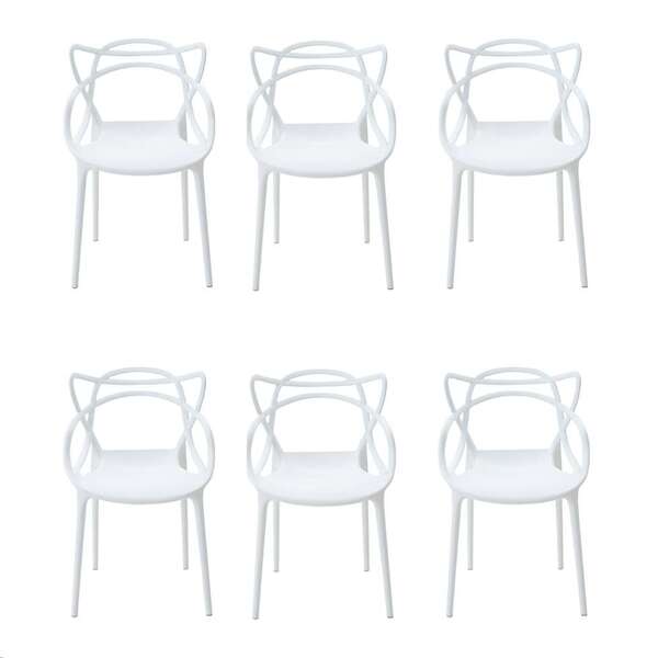 Por que o conjunto de cadeiras allegra?dona de um design moderno, o modelo allegra é a junção das famosas cadeiras tulipa, eifell e charles eames. Lindíssima, não é? A peça é confortável, espaçosa e possui o encosto de linhas curvas entrelaçadas que formam desenhos abstratos. Não parece que ela tem duas orelhas de gatinho? Charmosa, não é? O conjunto de cadeiras allegra vem com 6 cadeiras. Leva!
