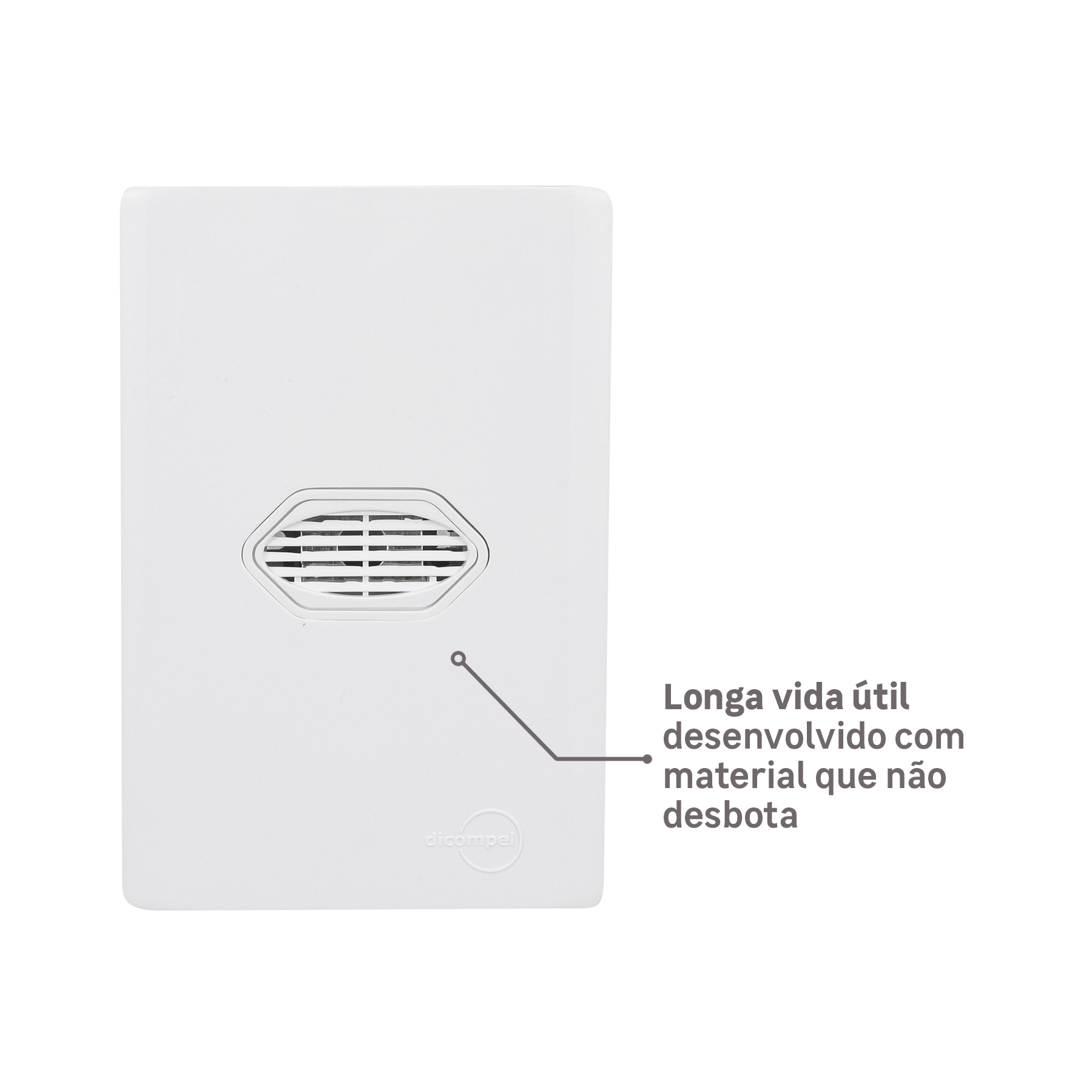 Conjunto de Campainha Cigarra com Placa Horizontal 4X2 Bivolt Branca Novara Dicompel