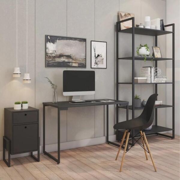 O conjunto de escritórioé ideal para sua casa! Informaçõesda mesa: altura: 75 cm largura:120cm comprimento: 60cm cor: preto pés : aço material:mdp-bp 30 mm estrutura em aço carbono pintura epóxi preto sapatas niveladoras informaçõesda estante: altura: 186,6 cm largura: 80 cm comprimento: 33 cm cor: preto prateleiras: sim (5) produto em mdp bp de 15mm informações da mesa de cabeceira: altura: 66,5 cm largura: 40 cm comprimento: 32 cm cor: preto produto em mdp bp de 15mm gavetas: sim (2) itens inclusos: 01 mesa 01 estante 01 mesa de cabeceira kit completo para montagem, manual detalhado de instruções para montagem. Garantia: 3 meses contra defeito de fabricação. Informações complementares: - fotos meramente ilustrativas do produto no ambiente. - os objetos que ambientam as fotos não acompanham o produto; - verificar descrição e tamanho do produto antes da compra. - avaliar a mercadoria no ato do recebimento e recusar em caso de divergência ou avarias. - limpar com flanela ou pano macio seco, não utilizar produtos abrasivos, desengordurantes, álcool ou solvente. Não expor o produto diretamente à luz solar e à umidade. * sugerimos a contratação de um montador profissional para a montagem do produto. Não nos responsabilizamos por avarias causadas no ato da montagem. * não nos responsabilizamos pela montagem e desmontagem do produto, assim como os custos gerados nestas situações. * a transportadora entregará o produto no andar térreo do endereço de entrega. * não nos responsabilizamos por subir escadas, corredores e elevadores ou transporte por guincho em apartamentos.