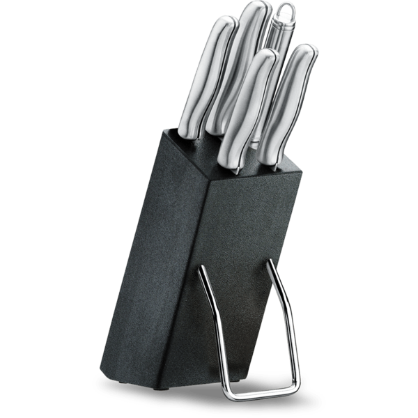Uma cozinha de revista! O conjunto de facas da linha prisma além de prático resistente e funcional é também um belo objeto de decoração. O kit reúne utensílios de uso cotidiano em um cepo em mdf que pode ser colocado sobre a sua mesa ou bancada e assim deixar as facas à vista e ao alcance das suas mãos. Os produtos da linha prisma são elegantes e sofisticados inteiramente feitos em aço inox um material resistente que não possui porosidades na superfície e evita o acúmulo de resíduos. Além disso seus cabos possuem design ergonômico que se adapta ao formato das mãos e permite precisão no corte e conforto durante a utilização.