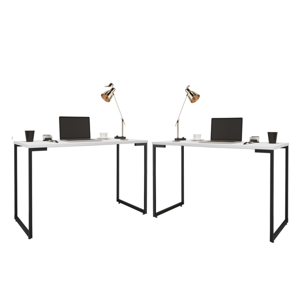 O conjunto de escrivaninhas é ideal para você e seu escritório! medidas do produto: altura: 75 cm largura: 120 cm comprimento: 50 cm informações do produto: cor: branco/ preto pés : aço material: mdp-bp 25 mm estrutura em aço carbono pintura epóxi preto sapatas niveladoras itens inclusos: 2 escrivaninhas kit completo para montagem, manual detalhado de instruções para montagem.