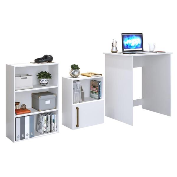 Kit office linea - o kit office linea é o produto ideal para você que procura um espaço organizado para home office, estudos, bem decorado e organizado. conta com 3 móveis super práticos: uma escrivaninha para colocar o notebook e também sobra um lugarzinho para as decoraç...