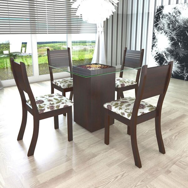 Conjunto Mesa 4 Cadeiras Bic Viero Moderna e elegante o móvel que falta para completar a sua sala de jantar! Características: Cadeira com estrutura mista madeira/mdf. Montagem das cadeiras com parafusos, cavilhas e porca meia lua, acompanha kit de tampas de parafusos Base com estrutura mista mdf/mdp; vidro 6 mm e não é temperado. Acessórios: Acompanha kit decorativo com folhas secas e objeto em gesso. Revestimento: Assento estofado com tecido chenile com composição afixada em etiqueta que acompanha o produto. Montagem: Parafuso, cavilha e porca meia lua. Dimensões base: Altura: 78cm Largura: 85cm Profundidade: 85cm Dimensões cadeira: Altura: 98cm Largura: 40cm Profundidade: 40cm Peso total: 49kg Garantia do Fornecedor de 03 Meses