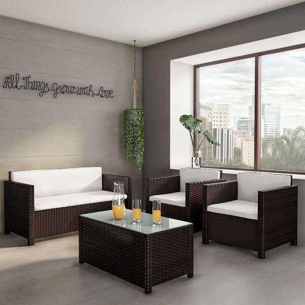 Que tal o conjunto para área externa ariella?o conjunto ariella é perfeito para reunir a família e os amigos nos dias agradáveis de verão para curtir bons momentos.  completo, ele conta com três poltronas e uma mesa de centro, que acomodam muito bem a todos e ainda oferece es...