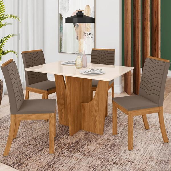Conjunto sala de jantar sei467, é o que você precisa para compor a sua sala de jantar, com seu design elegante vai transformar sua sala de jantar, agregando em seu ambiente beleza e modernidade. Estrutura de qualidade em mdp 15, 25 mm e mdf 15 e 25 mm, pintura com acabamento em uv/pu (brilho/fosco). Composto por mesa com tampo elaborado em mdf 25 mm para proporcionar resistência, seu formato retangular permite espaço para 4 pessoas e acompanham sapatas deslizantes. Cadeiras com assento de espuma d18, encosto estofado com espuma d15, espaldar em mdf com revestimento em pintura, encosto curvo e bordado, revestidas com tecido veludo, pés frontais com cantoneira de fixação para maior segurança e durabilidade, e acompanham sapatas deslizantes. As cadeiras suportam até 120 kg cada e mesa suporta até 40 kg distribuídos. Estes móveis chegarão na sua casa separados em 03 volumes.dimensões mesa daniellyxsci37x127altura 80 cmlargura 120 cmcomprimento 80 cmdimensões cadeira (4 unidades) k4dinaxsi11x501altura 95,5 cmlargura 41,5 cmprofundidade 55,5 cmprofundidade do assento 40 cmaltura do chão até o assento 45 cmsistema de montagemparafusos, haste roscadas, chapa de metal e cavilhas.recomendação de limpezalimpar com pano úmido para retirar o pó. Não aplicar produtos abrasivos.*produtos de enfeite não estão inclusos.importante saberas imagens são meramente ilustrativas, não acompanham objetos de decoração e eletrônicos.a tonalidade da cor do produto pode variar de acordo a calibração de cores do seu monitor, a iluminação do ambiente ou sua percepção visual.o cliente deve verificar a quantidade de volumes descritos na nota, as condições da embalagem, caso haja algum dano não assine o comprovante de recebimento e recuse a mercadoria.montagem, desmontagem e outras instalações serão de responsabilidade do cliente.não nos responsabilizamos por subir escadas/elevadores ou pelo transporte por guincho em apartamentos. Eventuais despesas são de responsabilidade do comprador.confira as dimensões do produto e certifique-se de que passarão normalmente por supostos elevadores, portas, escadas ou corredores de sua residência.o comprador ou a pessoa que receber os produtos deve verificar se os produtos recebidos correspondem ao mesmo modelo e à mesma quantidade dos produtos adquiridos, o entregador equivocado pode entregar volumes de outra carga.garantia de fábrica90 dias para eventuais defeitos de fabricação.