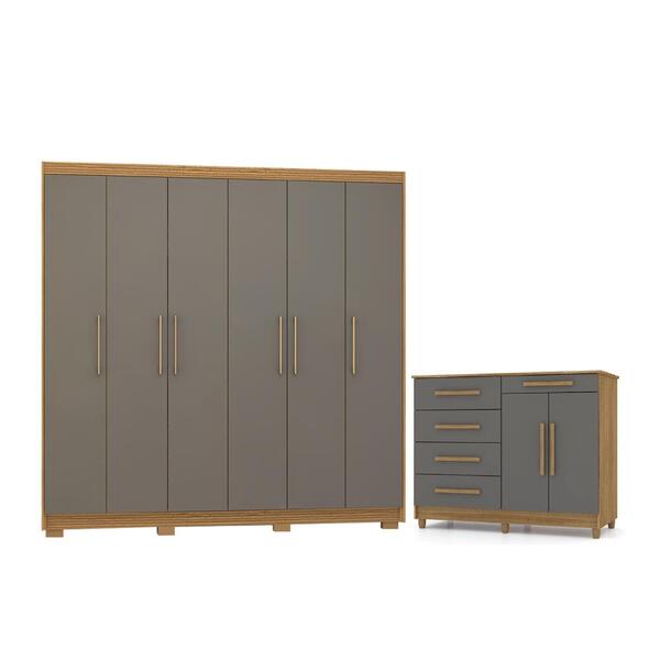 Este conjunto, possui todas as funcionalidades para atender a necessidade de espaço e organização do seu quarto! O guarda roupa possui seis gavetas com profundidade excelente para acomodar todas as suas roupas, contando com dez prateleiras móveis perfeitas para guardar cobertores,caixas e sapatos.. Acompanha dois cabideiros(duas opções de montagem) para pendurar as roupas com organização e segurança. A cômoda conta com cinco gavetas amplas para organizar todas suas roupas, possui uma prateleira móvel para organizar seus livros e caixas. Dimensão do guarda roupa: altura: 223 cm largura: 223 cm profundidade: 47 cm informação do produto: cor: nature/ alasca gavetas: sim (6) corrediças metálicas. Portas: sim (6) bater prateleiras: sim (10) móveis pés: sim (6) opcionais. Dimensão da cômoda: altura: 96 cm largura:122 cm profundidade: 47 cm informações do produto: cor: nature/ alasca gavetas: (5) corrediças metálicas. Prateleiras: sim (1) móvel pés: sim (6) opcionais. Puxador em mdf itens inclusos: 1 guarda roupa 1 cômoda manual de montagem kit completo para montagem e manual de instruções garantia: 3 meses contra defeito de fabricação informações adicionais: - fotos meramente ilustrativas do produto no ambiente. - os objetos que ambientam as fotos não acompanham o produto; - verificar descrição e tamanho do produto antes da compra. - avaliar a mercadoria no ato do recebimento e recuse em caso de divergência ou avarias. - mantenha as informações de contato e endereço de entrega atualizados para entrarmos em contato caso necessário. - limpar com flanela ou pano macio seco, não utilizar produtos abrasivos, desengordurantes, álcool ou solvente. Não expor o produto diretamente à luz solar e à umidade. * sugerimos a contratação de um montador profissional para a montagem do produto. Não nos responsabilizamos por avarias causadas no ato da montagem. * não nos responsabilizamos pela montagem e desmontagem do produto no ato da entrega e devolução, assim como os custos gerados nestas situações. * a transportadora entregará o produto no andar térreo do endereço de entrega. * não nos responsabilizamos por subir escadas, corredores e elevadores ou transporte por guincho em apartamentos.