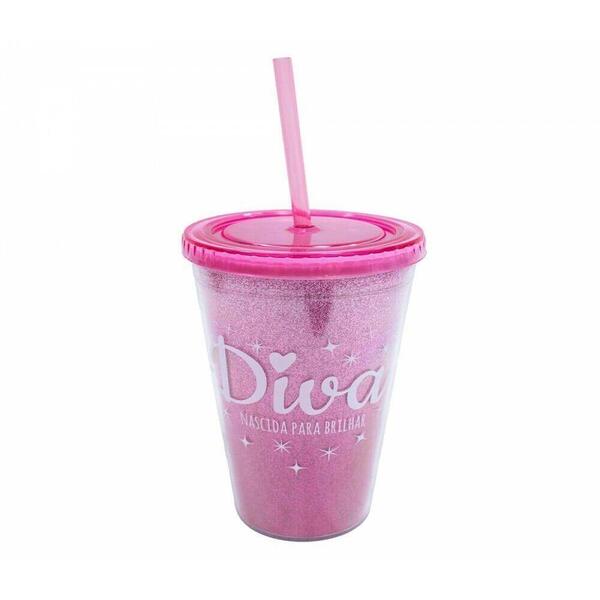Copo rosa com canudo diva: fsé louca(o) por copos? Confesso que nós amamos. Venha conhecer a linha completa de copos para usar no seu dia a dia na fings store. Venha conhecer principalmente esse copo rosade plástico com canudo revestido de purpurina brilhante e gravado com a frase "diva nascida para brilhar" e que comporta até 450 ml. Use para tomar suco ou outras bebidas. Arrase com grande estilo.instruções de conservação: lavar com água, esponja macia e detergente neutro. Não vai ao lava-louças, nem ao micro-ondas. Teme químicos e abrasivos.característicastamanho:altura: 15,5 cm |largura: 10 cm |profundidade: 10 cm |capacidade: 450 ml